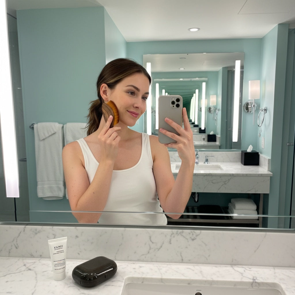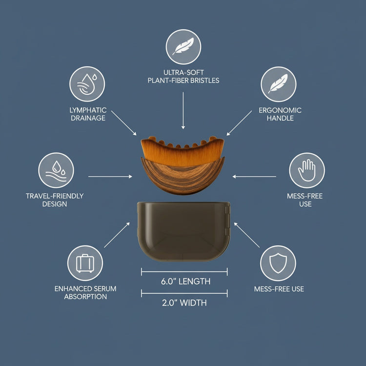 Stimulate lymph flow and enhance serum absorption with ultra-soft plant-fiber bristles and an ergonomic curved handle. Perfect for daily use or on-the-go touch-ups.